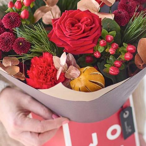A lovely little gift box of fresh blooms in classic Christmassy colours, chosen and arranged by an expert local florist.